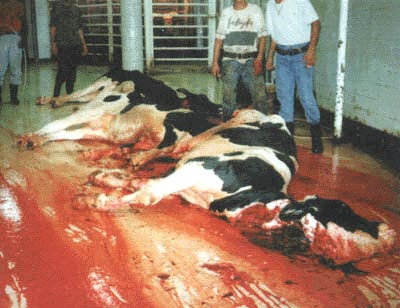 Kupując w sklepie kawałek mięsa, nie zastanawiamy się, nakładem jakiego cierpienia został nam dostarczony. Nie myślimy o tym, że kiedyś była to żywa, czująca istota. Każdy, kto miał ulubione zwierzątko, wie że są to żyjące stworzenia, zdolne do zadowolenia, radości strachu, głodu, bólu, tak samo jak ludzie. Nasze psy i koty kochamy, nigdy nie przyszłoby nam do głowy, żeby je zjeść. Każdego roku na całym świecie ginie w rzeźniach ponad 20 miliardów krów, cieląt, świń, drobiu i innych zwierząt. Zwierzęta zamykane są w setkach tysiecy ferm hodowlanych, w których warunki są, na skutek ograniczania wydatków, zatrważające! Przez całe ich życie leżą lub stoją w klatkach, które nie pozwalają na obracanie się, często wśród własnych odchodów i trupów sąsiadów. Warunki hodowlane powodują wśród zwierząt zachowania nienormalne, takie jak kanibalizm czy częste próby samobójcze. Mieso, które kupujemy w sklepie pochodzi z brudnych i cuchnących zwierzęcych "fabryk" i rzeźni, których nawet nie współczucie wobec losu zwierząt, ale sam odrażający widok skłania do porzucenia mięsnej diety!