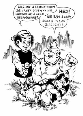 Rafał Spiak z FWZ-Szprotawa prowadzi "Pocztówkarnię" - produkuje i sprzedaje pocztówki o tematyce praw zwierząt, praw człowieka itp. Można zamówić u niego każdą ilość tych pocztówek i pomóc w rozprowadzaniu ich na swoim terenie. Rafał koordynuje też dystrybucje gadżetów FWZ. Jeśli wytworzysz koszulki, naklejki itp. ze wzorem animalistycznym, Rafał może pomóc Ci w ich rozprowadzeniu (np. na zasadzie wymiany). Jeśli chcesz poznać pocztówki oferowane przez Rafała, odwiedź stronę Pocztówkarni! Poniżej są przykłady. Uwaga! Pierwszy wzór, podarowany przez Janusza Christę, dostępny jest też na koszulce - niewiele ich zostało, śpiesz się!